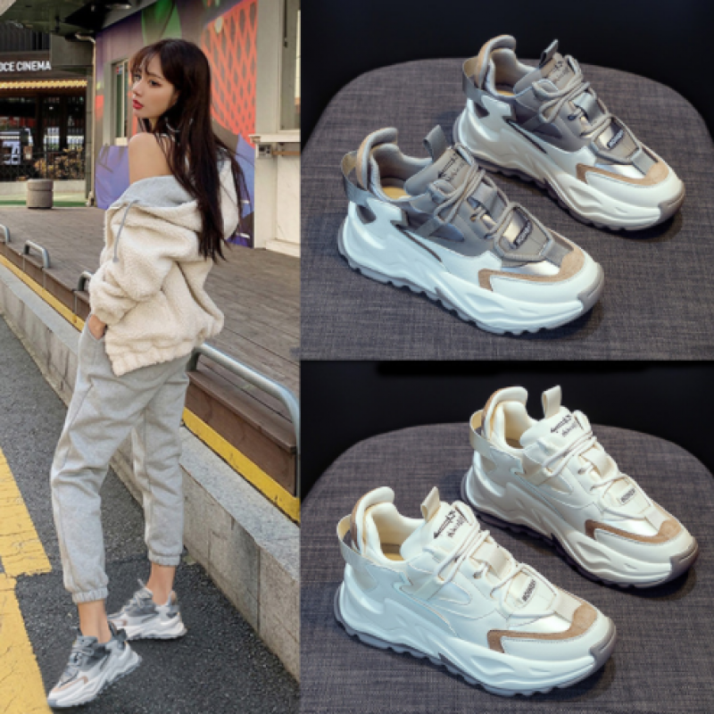 Genuine leather daddy shoes ins plus velvet thin section 2022 new spring and autumn women's shoes thick-soled explosive style sports and leisure shoes (2 шт)