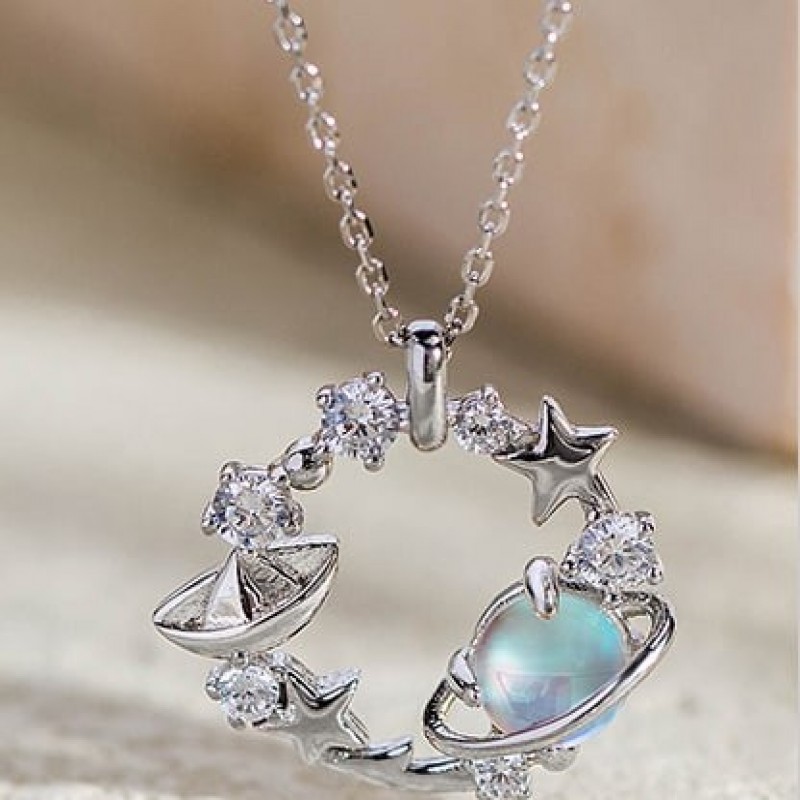 Fanci Fan Qi серебряные украшения Lianlian Planet голубое стекло камень ожерелье женский 925 серебро планета ключица цепь кулон RM555.0 |